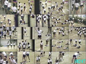 | 校庭が眺められる高所から体育授業の様子を撮影した作品。のんびりと、ゆるやかにブルマ姿の準備体操、バレーボールなどまったりと楽しめます。グラウンドに寝そべった女子の濃紺ブルマ、グラウンドの土がブルマを白く汚すシーンは何気に良きです。 収録時間42 |
